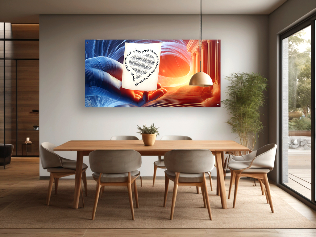 הדפס על זכוכית למראה מודרני ומרשים דגם יד עם עמודים ונחל