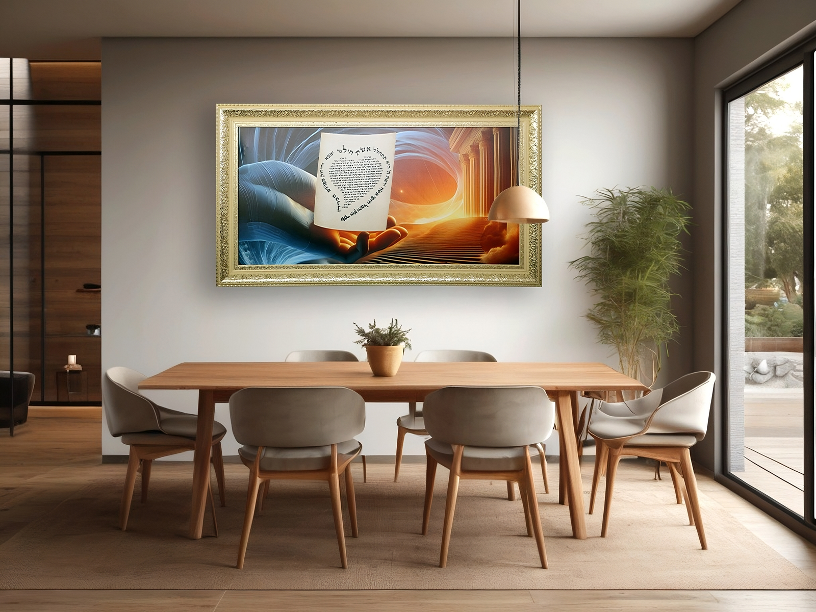 קנבס איכותי עם מסגרת, לתליה בביתך דגם יד עם עמודים ונחל